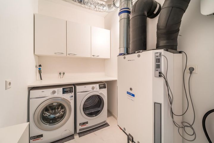 In het appartement geniet u van vloerverwarming en -koeling, de gevel van het gebouw heeft geïntegreerde zonnepanelen.