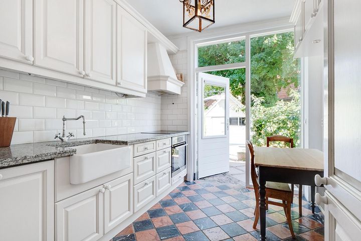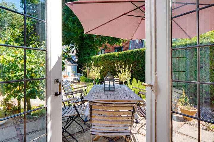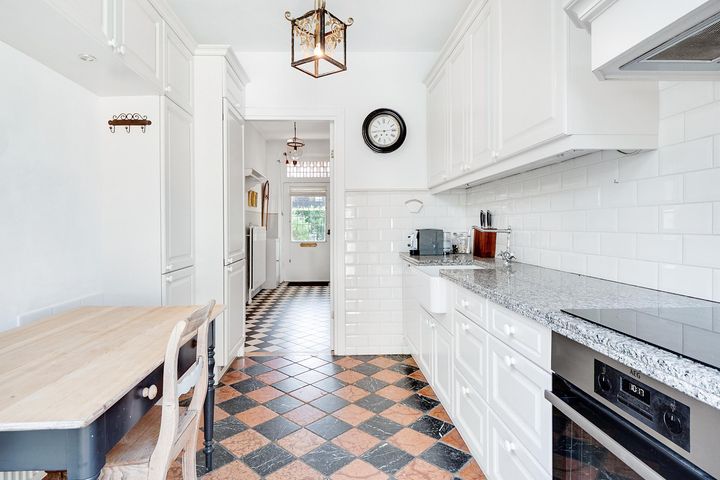 Vanuit de hal bereikt u tevens de klassieke keuken, deze is voorzien van diverse inbouwapparatuur. Vanuit de keuken heeft men toegang tot de zonnige tuin met veel privacy.