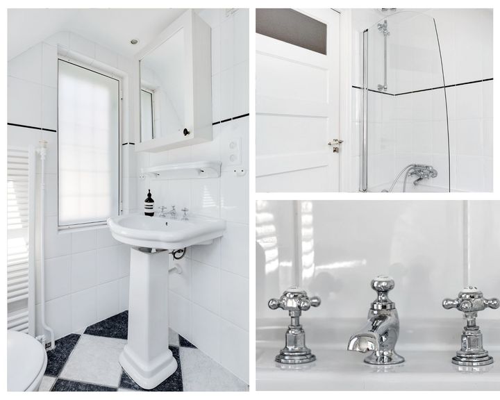 Eerste verdieping: vanuit de royale overloop bereikt u drie in grootte variƫrende slaapkamers en de moderne, nette badkamer. Deze is voorzien van ligbad, douche, wastafel, verwarmingselement en toilet.